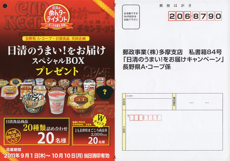 日清/プレゼントキャンペーン用ハガキ