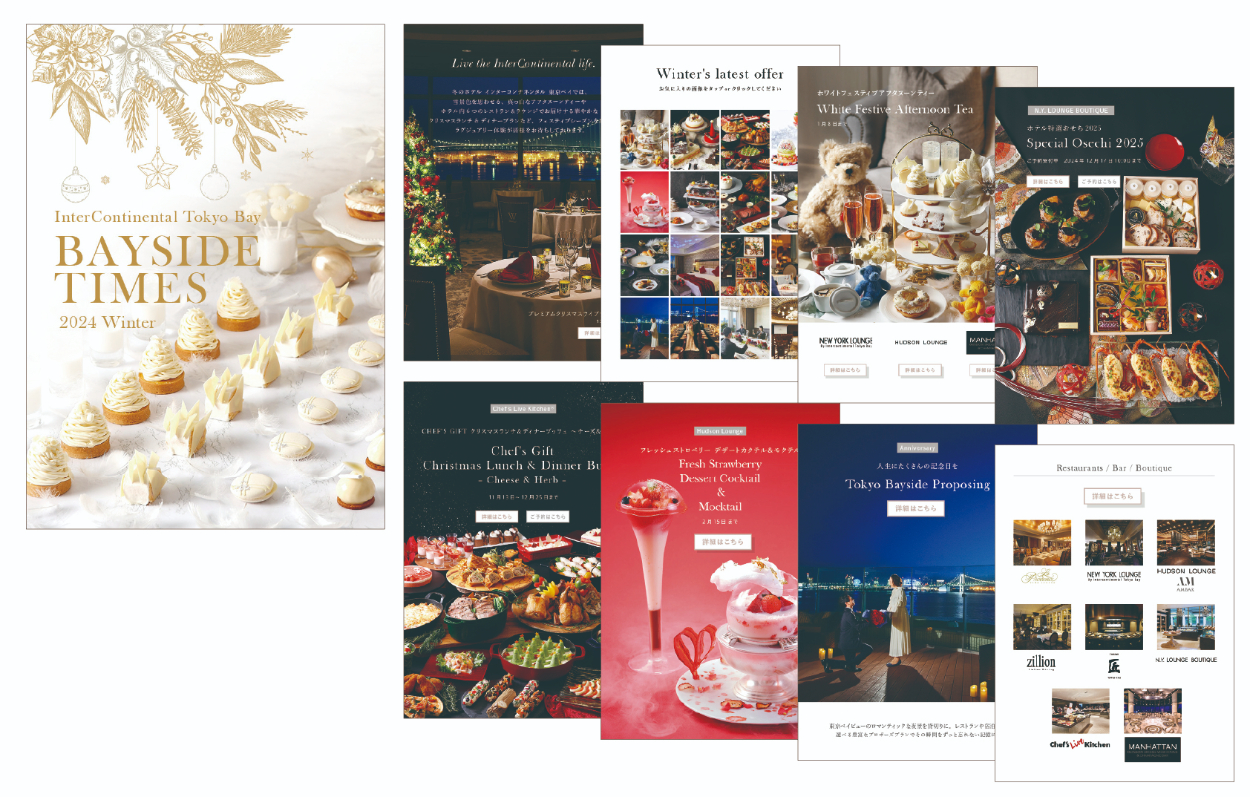 館内のレストランを中心に、季節のイベント、ブッフェやアフタヌーンティー、フェア情報などの旬な情報を紹介する全20ページのデジタル冊子。