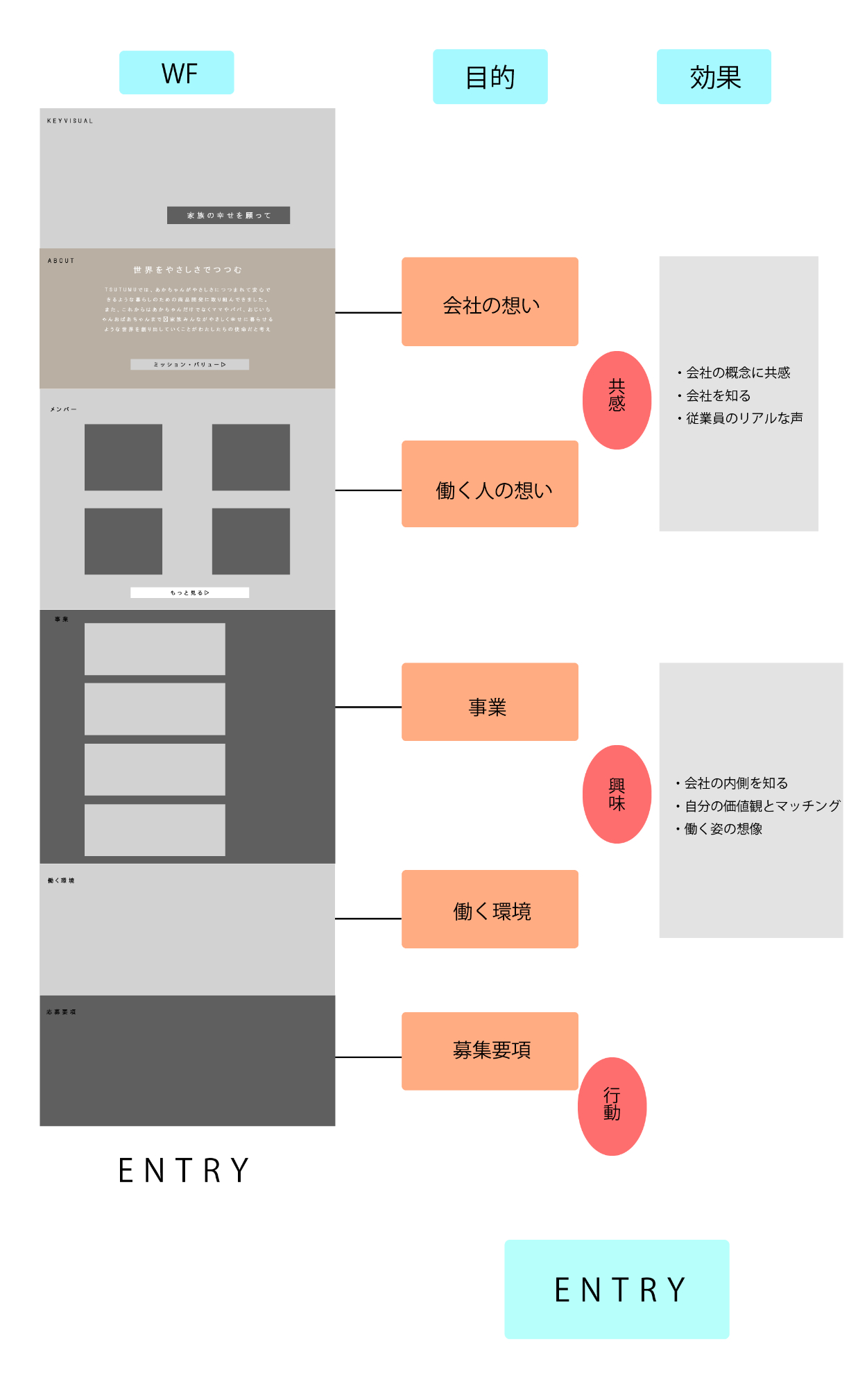 今回はカルチャーフィットする人材の採用が目的である為、企業の世界観をサイトで表現していくことが大切だと考えました。
