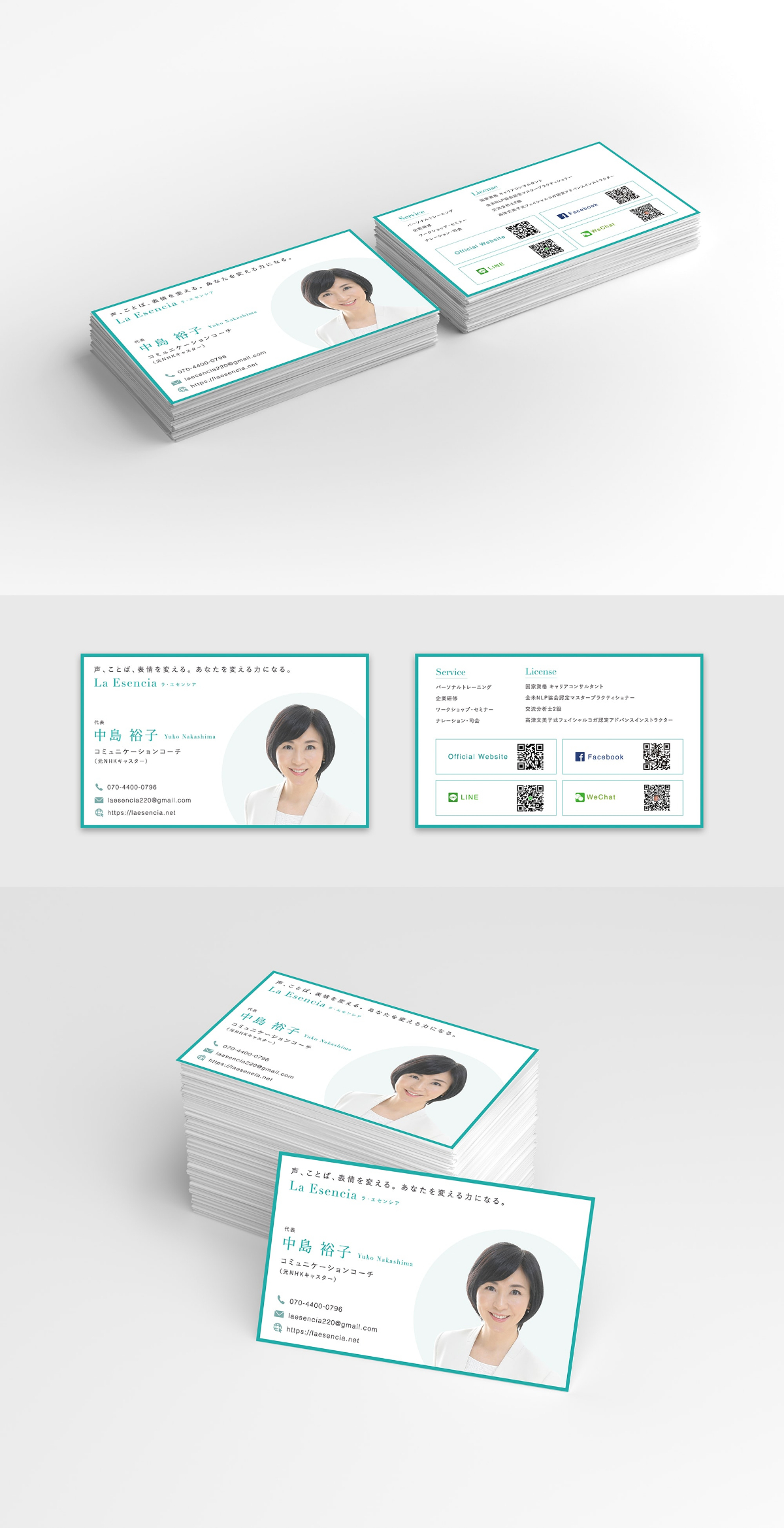 NHKキャスターのキャリアを経て現在、コミュニケーションコーチとして活躍されている中島裕子さんの名刺をリ・デザインさせていただきました。