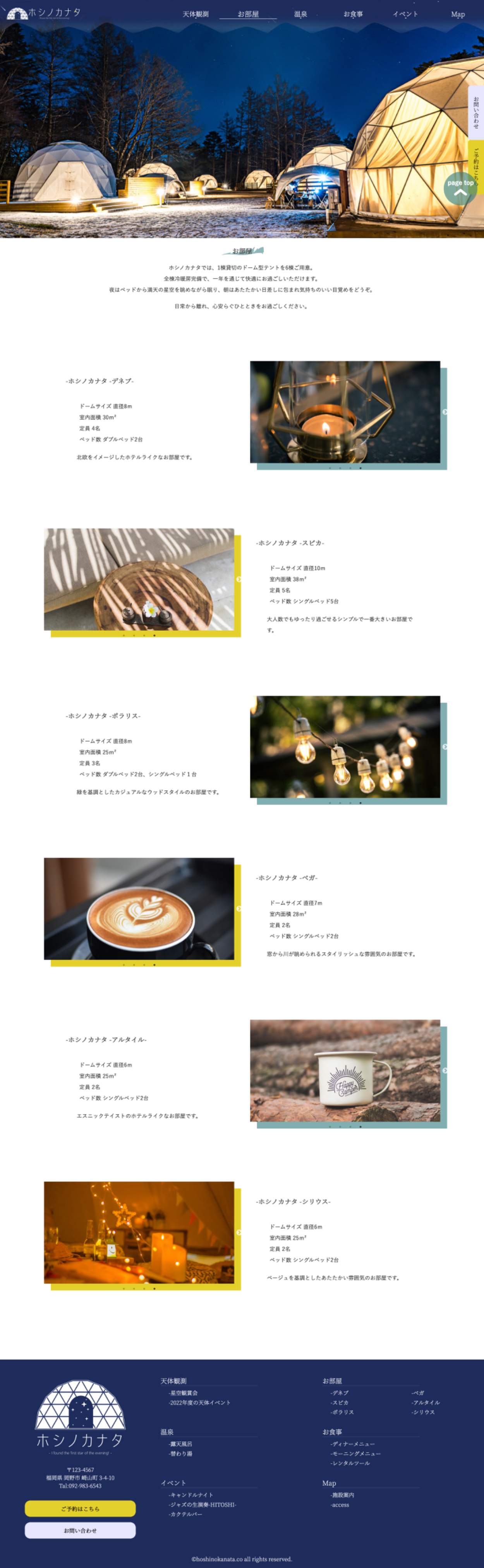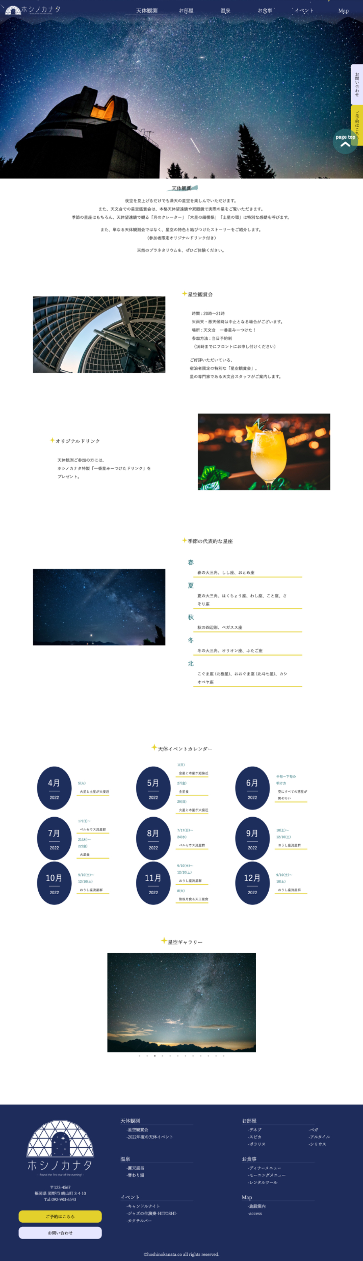 ●天体観測をアピールポイントにしている施設なので、美しい星空の写真の選定にこだわりました。