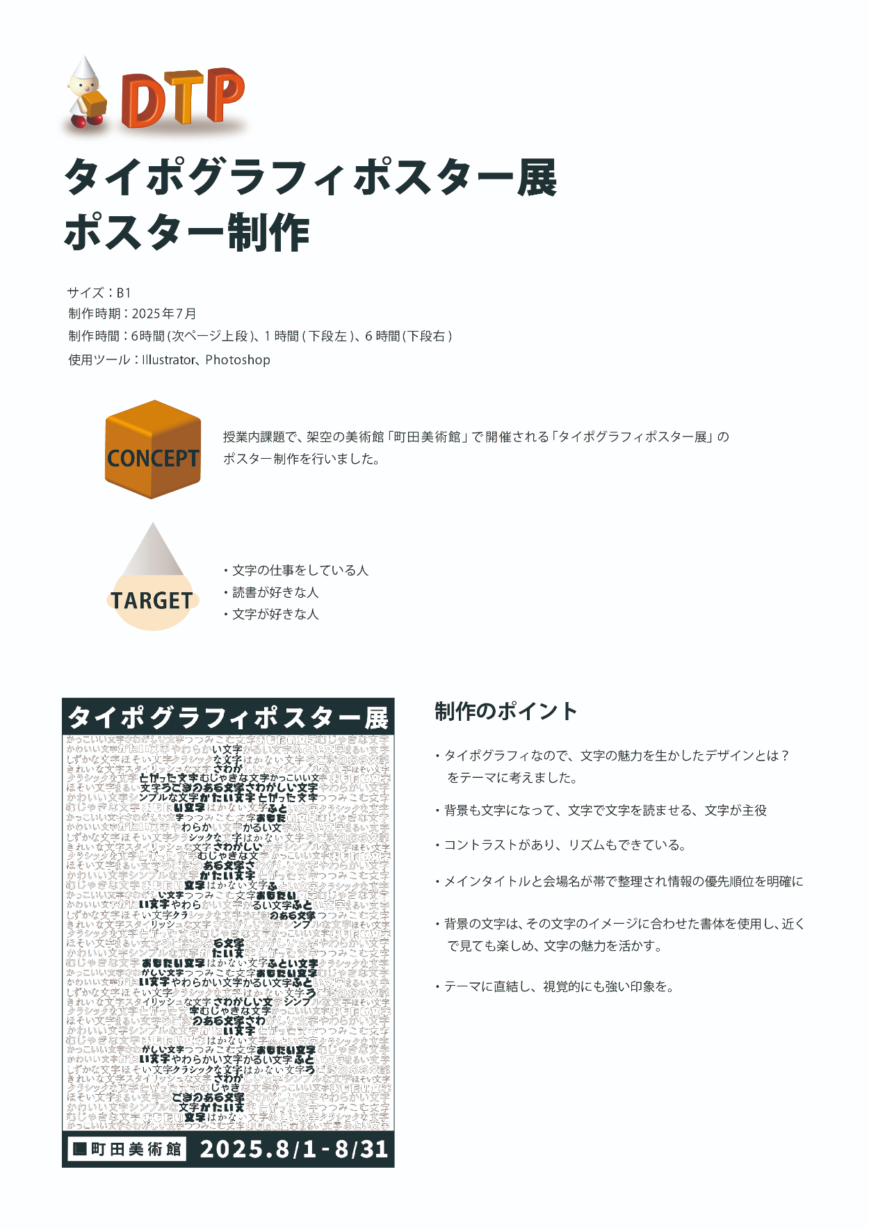 授業内課題で、架空の「タイポグラフィポスター展」のポスター制作を行いました。