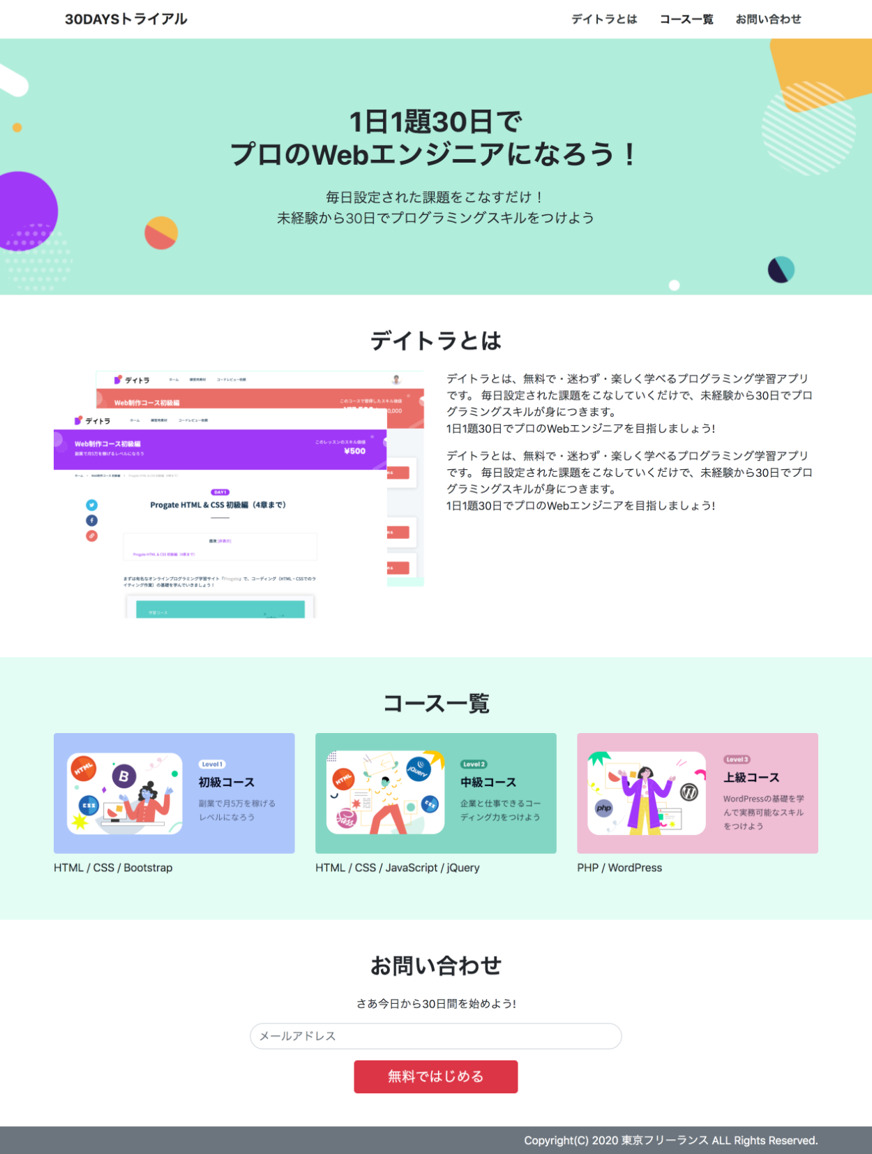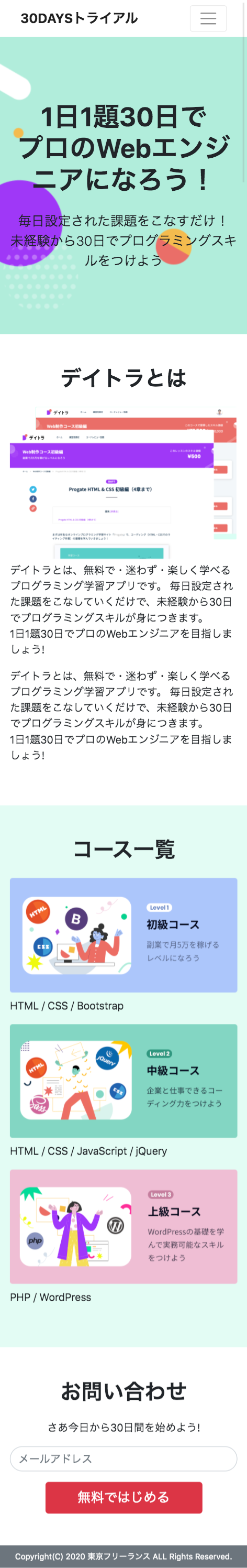 デイトラアプリの簡易版サイト(LP)