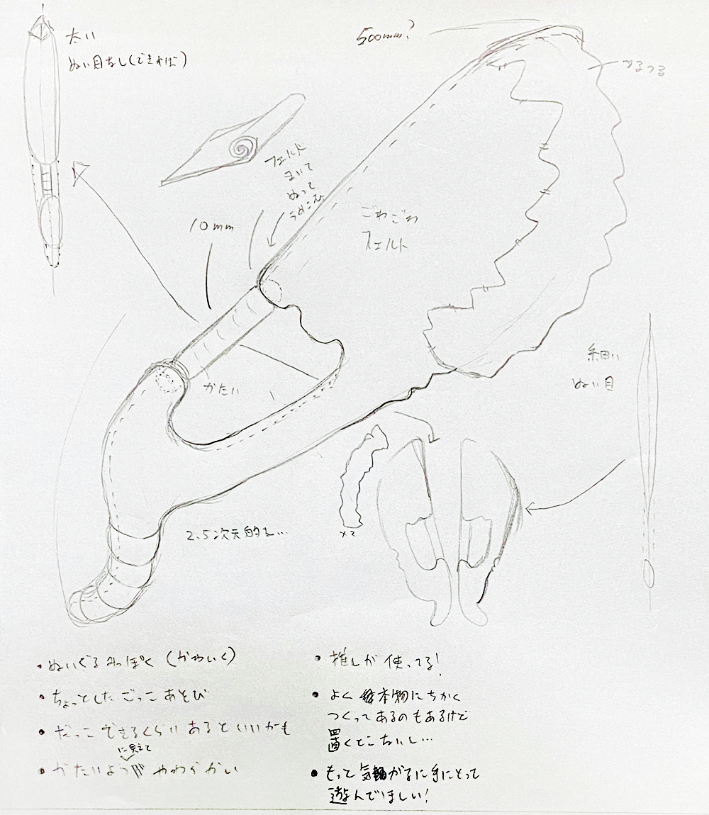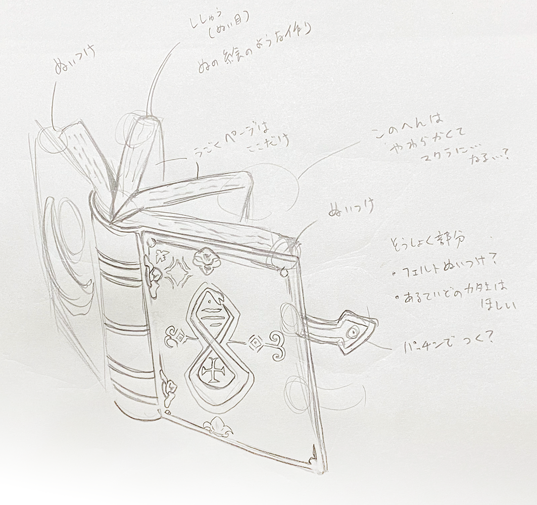 某ソーシャルゲーム内のキャラクターが所持している武器をぬいぐるみしてみたらどうか?というもの。等身大のものの制作物はあるが、もっと手軽に部屋に飾ったり遊んだりできるものがあればよいな、と思い作成。