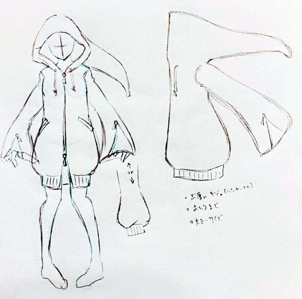魔導士をイメージしたパーカー。希望としてはもう少し生地を厚く、長さも膝まであるものが欲しいと思いデザイン作成。