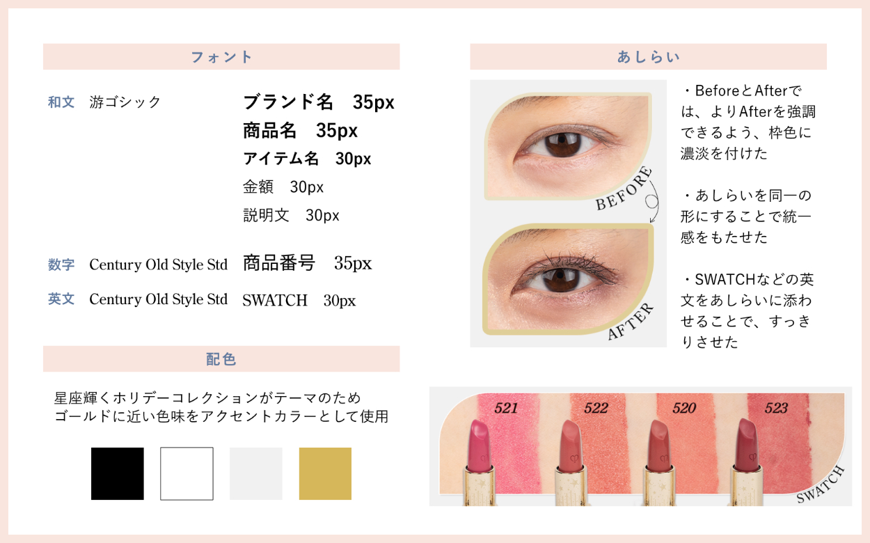 - ブランド名や商品名はボールドを使用。その他はミディアムを使用し強弱を付けた
